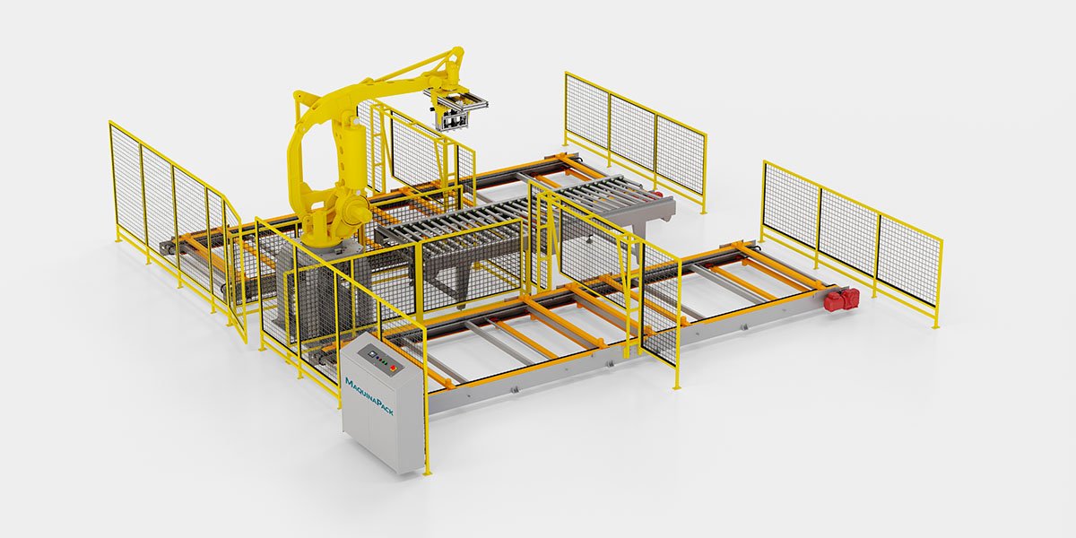 Equipamento dedicado a paletizar caixas.